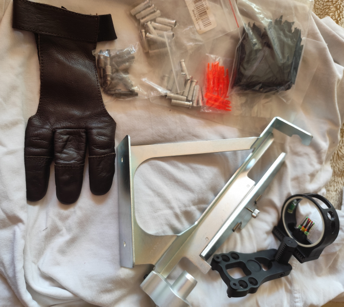 Zum Verkauf steht ein umfangreiches Konvolut an Bogensport-Zubehör, ideal für Einsteiger, Bastler oder zur Ergänzung der eigenen Ausrüstung.