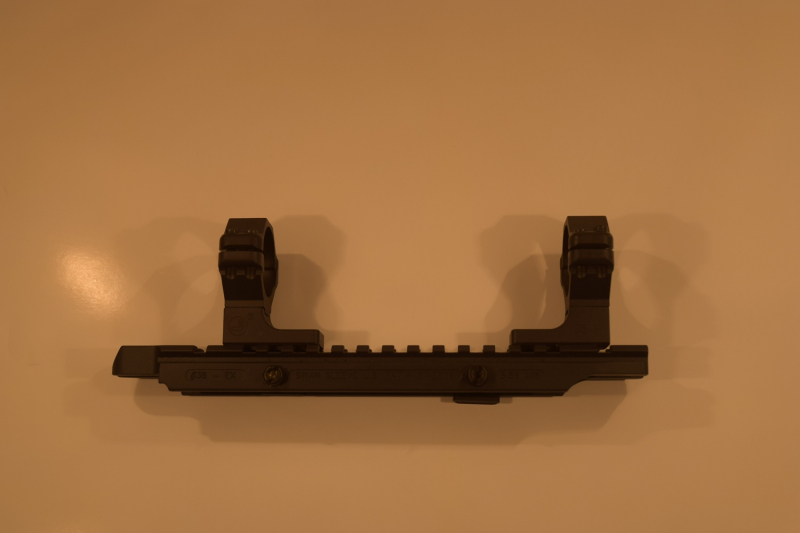 Zielfernrohrmontageaufsatz für Picatinny-Schiene, sog. Svan Sleeve. Komplett mit 2 versetzbaren Ringen für Mittelrohrdurchmesser 30mm. Bauhöhe 35mm, gerechnet ab Oberkante des Montageaufsatzes. Leichte Gebrauchsspuren Versand nur als Paket wg. Sendungsverfolgung. Bei Versand ins Ausland berechne ich aktuelle DHL Versandkosten – bitte Höhe für Ihr jeweiliges Land erfragen. Privatauktion, daher keine Gewährleistung und keine Rücknahme.
