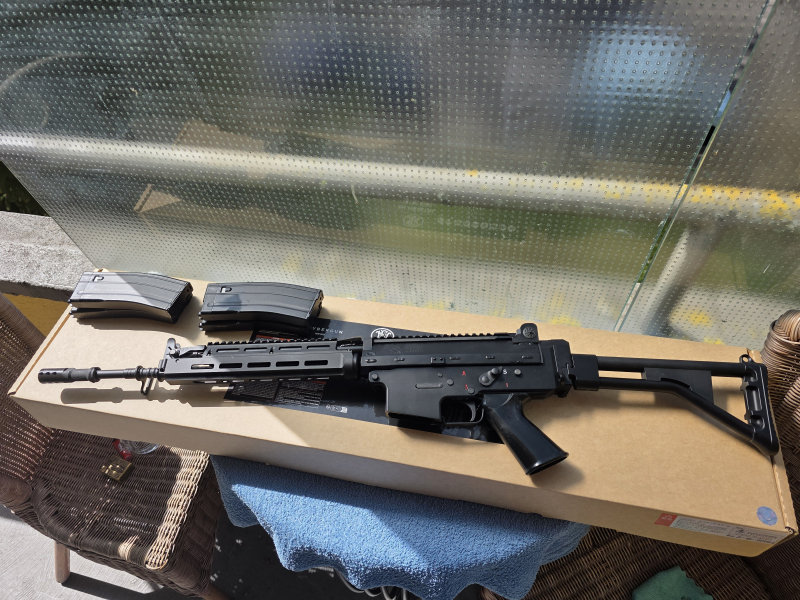 Angeboten wird ein VFC FN Herstal FNC Airsoft GBB Gewehr. Das FNC ist Defekt grob gesagt warscheinlich muss nur ein neues Nozzel eingebaut werden, das aber unter Vorbehalt. Die Airsoft wird im Orginal Karton geliefert, mit 4 Magazinen die gebraucht aber IO einwandfrei sind. Am FNC ist der M Lock Handschutz montiert. Gwehr ist abgesehen von dem warscheinlich defektem Nozzel in Top zustand, keine Kratzer oder so. Privat Auktion keine Garantie und keine Rücknahme.