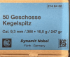 zum Verkauf stehen aus Wiederlader-Nachlass 50 x Geschosse RWS KS Kegelspitz .366/9,3mm - 247 grain schwer. Sind originalverpackt.