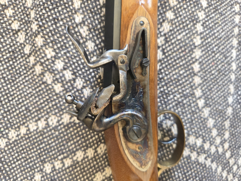 Sie können hier auf eine sehr schöne Kentucky Steinschloss Vorderlader Pistole in Cal. 45 bieten. Diese ist im guten Zustand. Keine Macken oder Haarrisse im Schaft. Der Lauf ist außen ohne Rost. So wie ich es erkennen konnte befindet sich auch im Lauf kein Flugrost, dafür kann ich aber keine Garantie geben. Ich selbst hab mit der Waffe nie Geschossen, ob und wie oft Sie beim Vorgänger im Gebrauch war kann ich nicht sagen. Lauf wurde von mir einmal außen mit Brunox bearbeitet und innen mit Ox York. Den Schaft hab ich einmal mit Schaftöl Pflege bearbeitet.