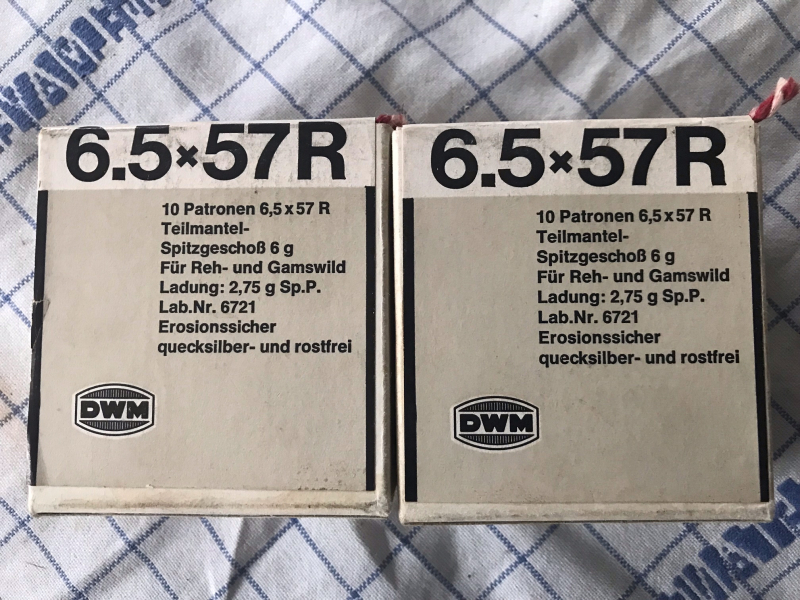 Von Privat aus einem Nachlass an EWB : 20 Schuss im Kaliber 6,5x57R von DWM mit dem 6 Gramm Teilmantel Spitzgeschoss, beide Schachteln versiegelt, ein Los - siehe Bild - Fabrikpatronen - Von Privat, daher keine Garantie oder Rücknahme - Versandpauschale 6 Euro - Verkauf nach Österreich nach Rücksprache möglich -