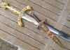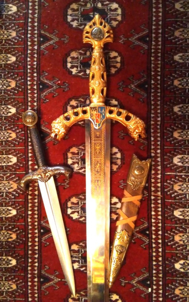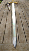 Ausgefallen schönes Ritterschwert mit Dolch und Scheide. Gesamtlänge 117 cm und 93 cm Klingenlänge.