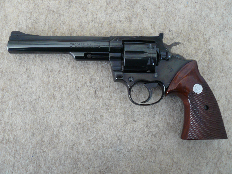 Zustand: sehr gut, wenige Gebrauchsspuren (Brünierung berieben am Lauf rechts und an der Trommel – siehe Bilder), Timing sehr gut, Lauf spiegelblank