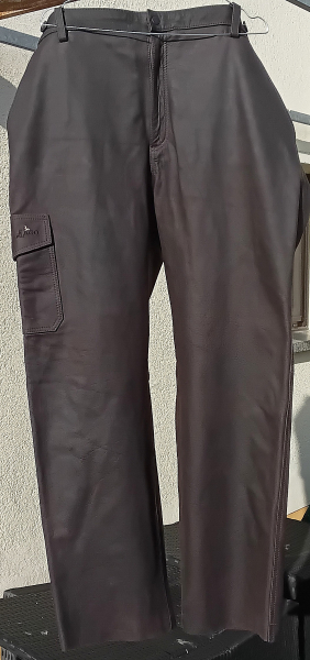 Biete Jagd - Hose, Jagd- Jeans, Farbe: braun, Material: Obermaterial Glattleder, Futter: Polyester, Größe: 62, Bundweite: ca. 59 cm (einfach), Schrittlänge: ca. 81 cm, vorn 2x Einschub- Taschen, 1x verschließbare Tasche seitlich, hinten 2x verschließbare Taschen, Messertasche, Knöpfe für Hosenträger, neu ohne Etikett, unbenutzt
