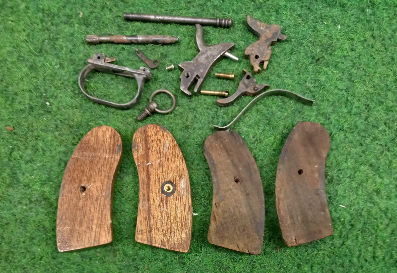 Aus einem Nachlass wird folgender Artikel wird angeboten. Alte Revolverteile und Griffschalen unbekannt für Bastler und Sammler. Erhaltung siehe Fotos.