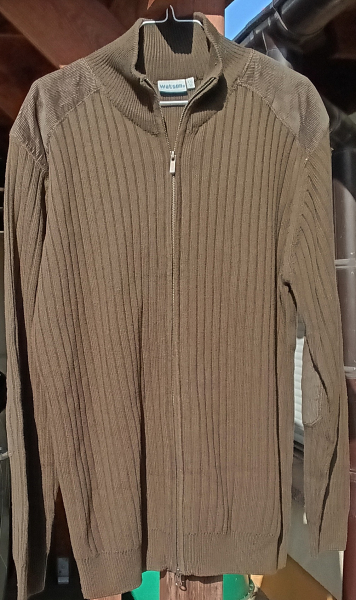 Biete leichte Jagdstrickjacke, Unterziehpullover, 2- Wege- Reißverschluß, Farbe: oliv, Gr. 58 (XXL), Material: Baumwolle - Mischgewebe, verstärkter Schulterbereich, gebraucht, sehr guter Zustand