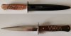 Aus dem Nachlass gebe ich einen Grabendolch mit Metallscheide und Holzgriff mit eingearbeiteten Streifenverzierungen zur Auktion.