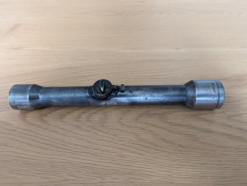 Sie bieten hier auf ein Zielfernrohr vom Typ Zielvier der Firma Carl Zeiss Jena. Das Zielfernrohr ist aus Stahl gefertigt und hat eine vierfache Vergrößerung bei 30mm Objektivlinsendurchmesser und das Absehen 1. Die Seriennummer lautet 39055, womit das Zielfernrohr in der ersten Hälfte der 30er Jahre produziert wurde (Quelle: Seriennummerliste Wild und Hund Forum).