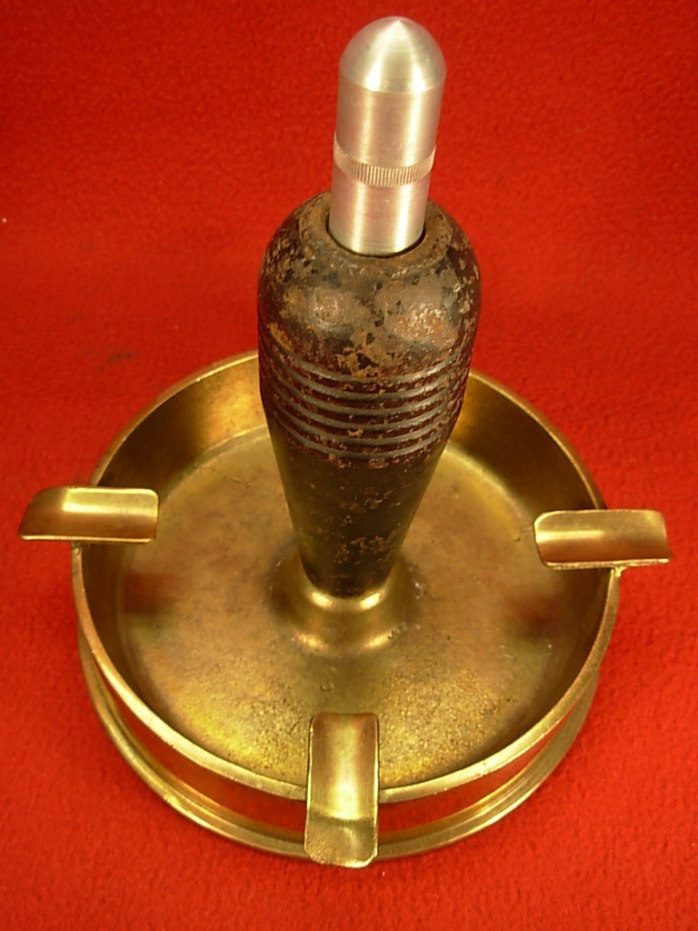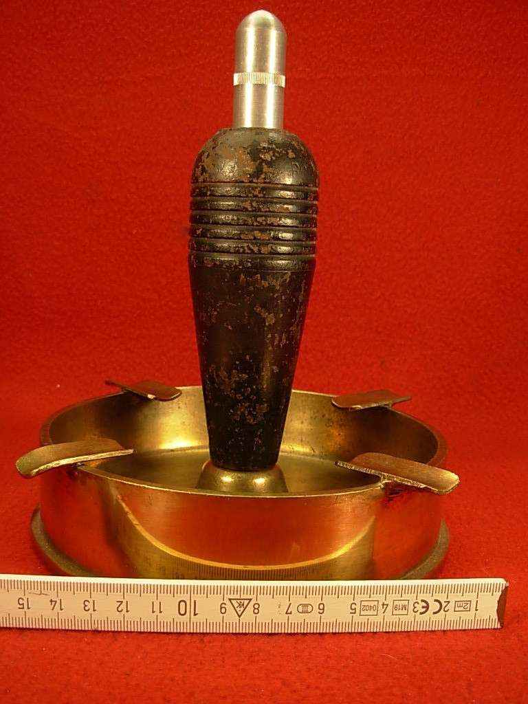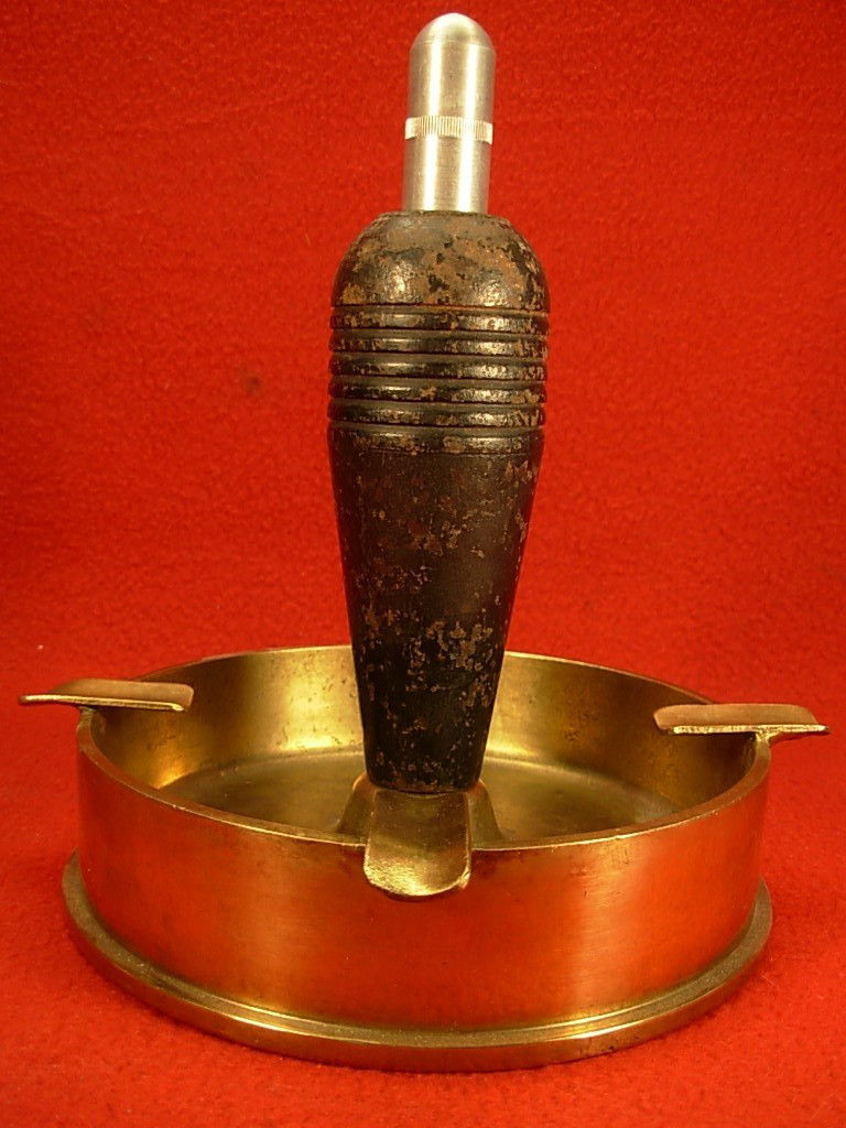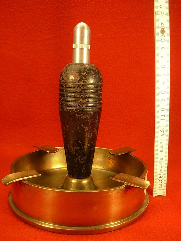 II.WK – Wehrmacht Ausrüstung – dekorativer Aschenbecher – massive Messingkartusche mit Werfergranate und Wehrmachtsfeuerzeug – ––––- Zustand siehe Bilder . Artikel stammt aus Sammlungsauflösung. Bei Fragen bitte Mail-