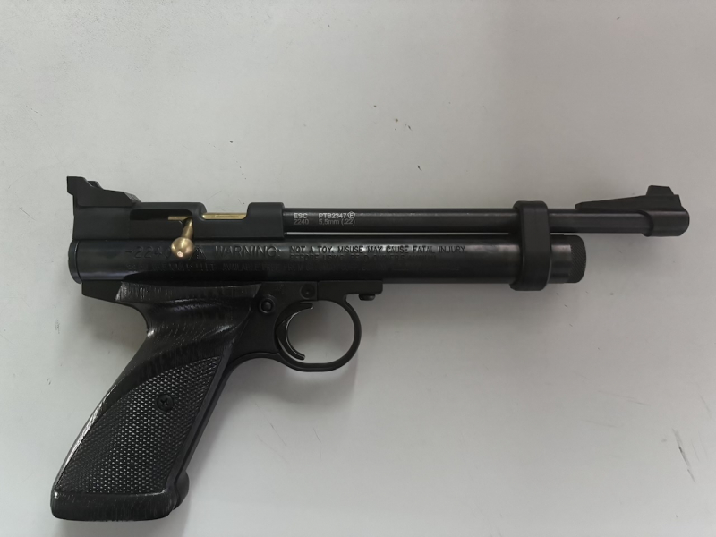 Die Crosman 2240 ist eine einschüssige CO₂-Luftpistole im Kaliber 5,5 mm (.22). Sie wird mit einer 12g CO₂-Kapsel betrieben und ist für Freizeit- und Scheibenschießen ausgelegt.