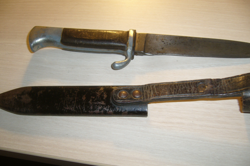 Hallo, biete ein Kampfmesser RZM M7/13 1.oder 2.WK mit Scheide,Holzgriff, auf der klinge RZM M7/13, Altersbedingte Gebrauchsspuren siehe Fotos, Original Partina, Klingenlänge 14cm, Gesamtlänge 24,5cm.