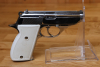 Besonders hervorzuheben sind die weißen Griffschalen, die zusammen mit der Verchromung für eine sehr auffällige und edle Optik sorgen. Diese Kombination ist deutlich seltener als Standardausführungen und macht die Pistole besonders interessant für Sammler.