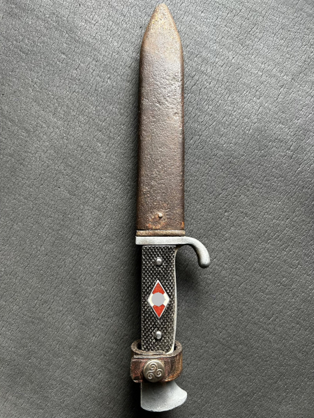 Zum Verkauf steht ein HJ Fahrtenmesser mit Herstellerkennung M7/56 aus dem Jahr 1940.