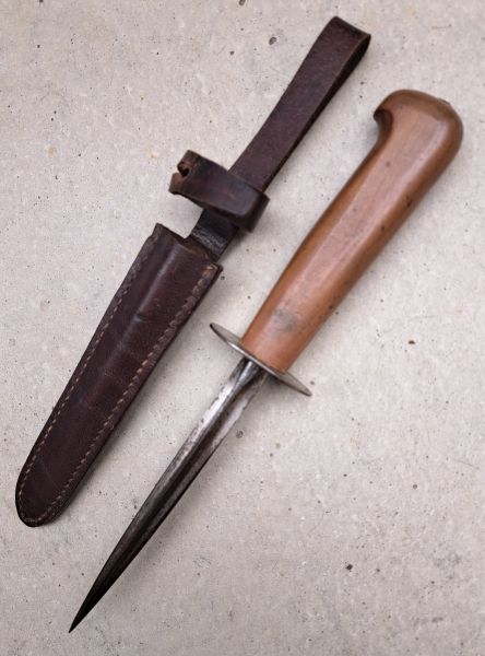 Verkaufe ein originalen französischen Grabendolch / Stichdolch aus dem I. Weltkrieg im Top Zustand. Die Klinge hat den originalen Zustand, das Stichblatt ist mit Hersteller "GP" gemarkt, die Lederscheide ist schön fest und kräftig..Alles in allem ein ausgezeichneter und ausdrücklicher Sammelzustand!