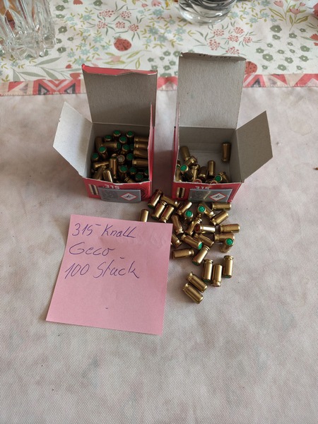 Biete 100 Knallpatronen von Geco Kalieber 315. Bei Fragen einfach melden. Wie bei allen Auktionen natürlich auch hier unter Ausschluss jeglicher Gewährleistung. Altersnachweis erforderlich Da Privatverkauf keine rücknahme und Garantie möglich.