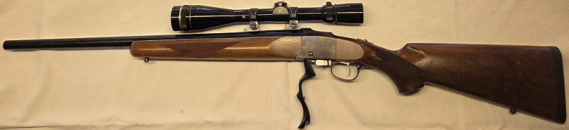 Ruger No.1; Kaliber .22-250 Remington, Varminter; Fallblockbüchse; Einzellader; ohne offene Visierung, dafür mit Zielfernrohr Leupold 6,5 - 20 Vari X III, Duplex ohne Leuchtpunkt, Waffenzustand und technisch sehr gut, das Zielfernrohr hat Gebrauchsspuren, Hinterschaft ohne Schaftbacke und keine Schränkung, für Linksschützen geeignet, Gummischaftkappe, Riemenbügelschrauben vorhanden. Lauflänge ca. 59 cm; Schaftlänge ca.35 cm; Kaliber ist für sehr weite und präzise Schüsse auf Kleinwild und Raubwild geeignet. Die Waffe ist lagernd vor Ort; Für weitere Bilder bitte genau beschreiben, wir tun unser möglichstes. Bilder sind vorhanden.