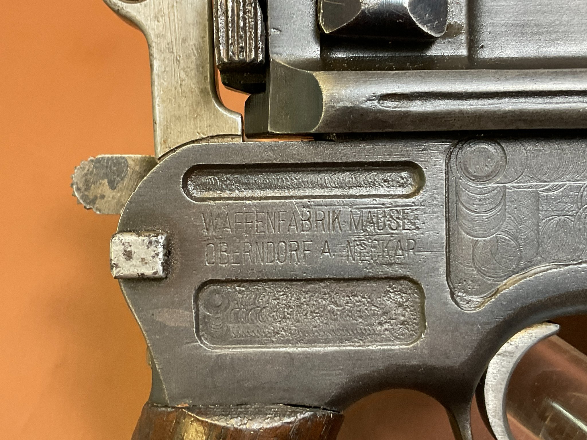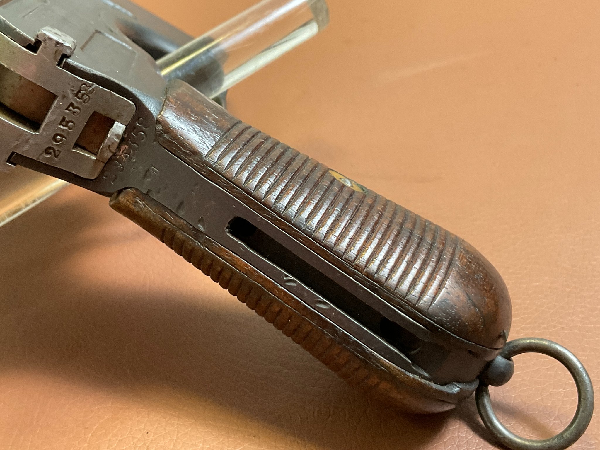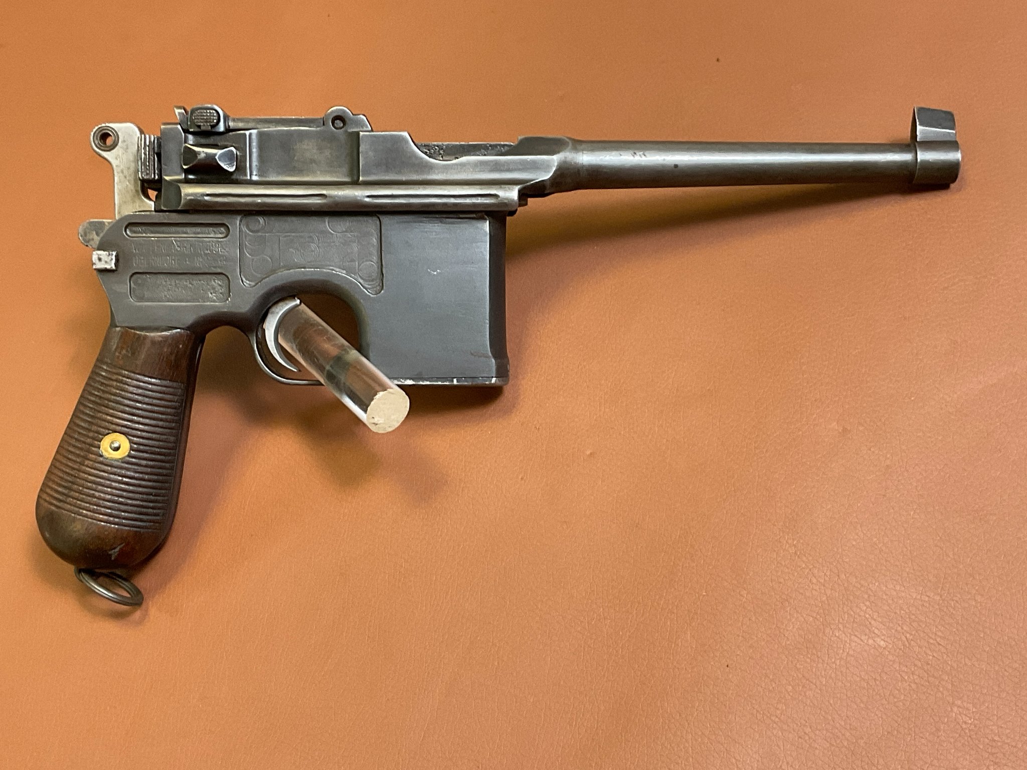 Pistole Mauser C96 im Kaliber 7,63 mm Mauser SNR 295358um Verkauf steht eine Pistole Mauser C96 im Kaliber 7,63 mm Mauser.