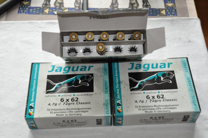 Ich verkaufe hier aus einem Jägernachlass Munition von Jaguar im Kal 6x62 in bleifrei mit einem 4,7 Gramm Geschoss .