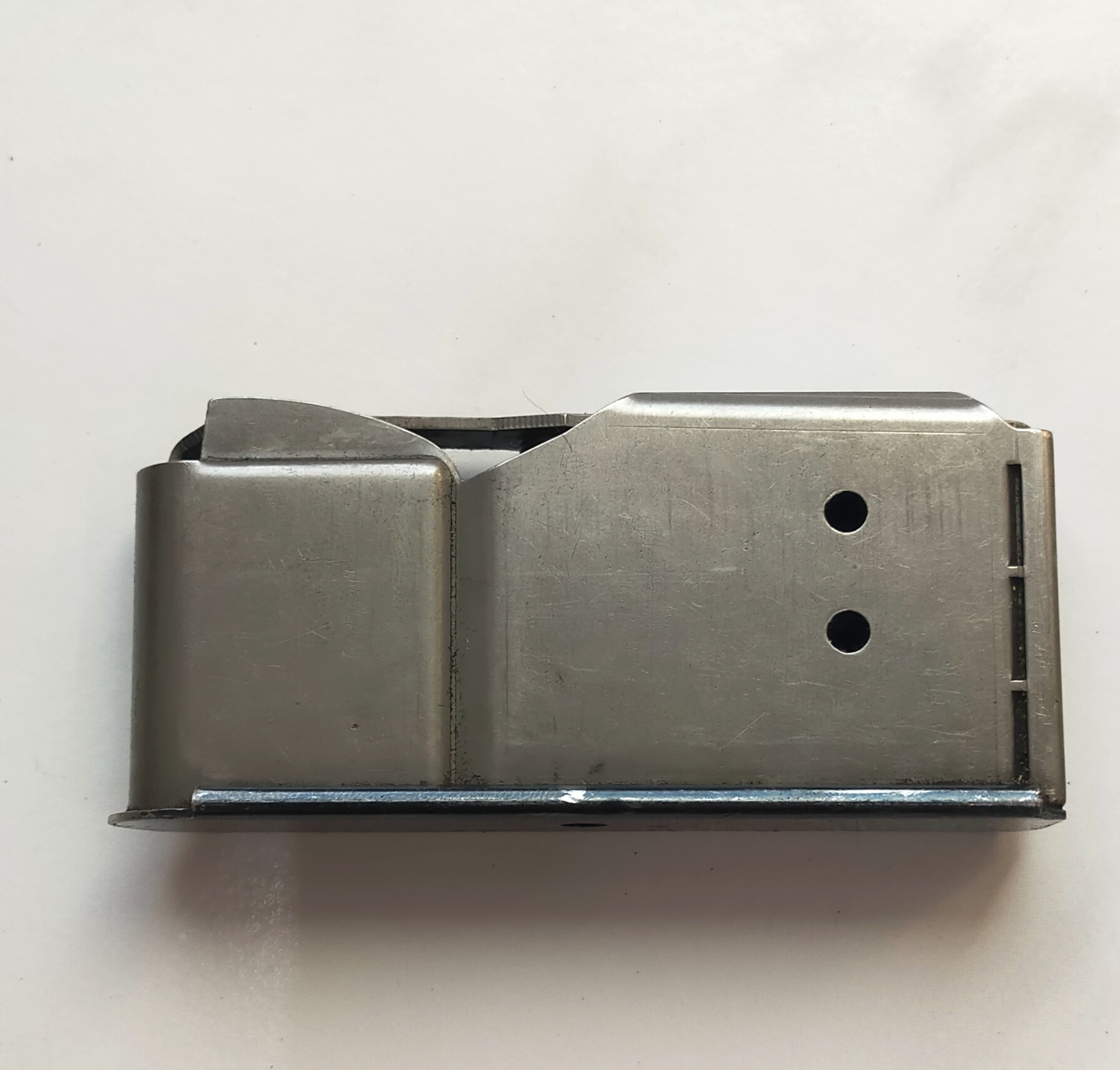 Ich verkaufe hier ein original VOERE Stahlblech Magazin passend für die Modelle VOERE 2185, SAUER 200 +202 im Kaliber 9,3x62. 2 Schuss Kapazität.