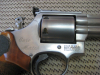 Der Revolver wurde durch den Revolverspezialist Herr Merkle, Backnang überarbeitet. Innere Abzugsteile poliert, Abug auf 1000 Gramm Abzugsgewicht getunt, Triggerstopp eingebaut, Sonnenschliff auf Hammer, TRT Visier, 2-stufig verstellbares Korn (kostet alleine fast 100 Euro), 3 verschiedene Griffe einer davon von Nill + original Karton von S&W.