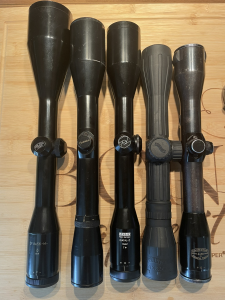 Zum Verkauf steht ein attraktives Zielfernrohr-Konvolut bestehend aus mehreren klassischen und bewährten Optiken unterschiedlicher Hersteller. Ideal für Jäger, Sammler oder Wiederverwerter von Montagetechnik.