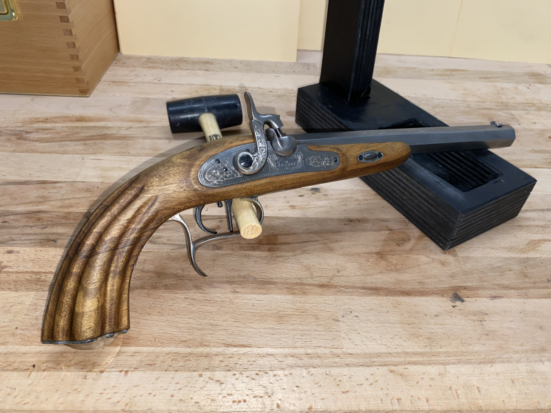 Zum Verkauf steht eine klassische Vorderlader-Scheibenpistole im Le-Page-Stil vom italienischen Hersteller Armi Sport, Gardone Val Trompia, Italien.
