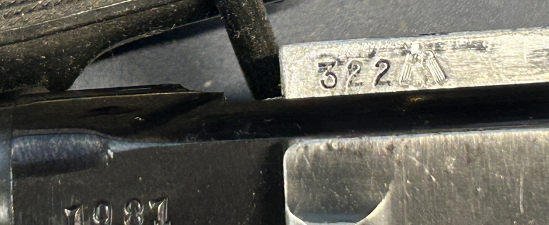 Halbautomatische Pistole Mauser mit der Jahreszahl 1939 auf Gabel sowie Waa 63 Stempelung, im Kaliber .22lr. Dicker Matchlauf. Griffstüch Nummerngleich.Verstellbare Visierung. Original Verschlusseinheit von Erma. Nussbaumgriffschalen. Kein Rost. Schöner Zustand. Funktion geprüft. Lauflänge 15 cm. Magazin 8 Patronen. Gültigen Beschuss.