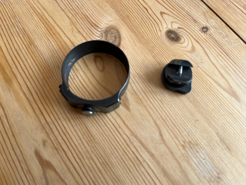 Und der Dreh-Verschluss (Hinterfuss) für ein Zielfernrohr mit Schiene und 15 mm Prismenaufnahme auf der Waffe. Das Bauteil ins von Henneberger.Beide gehören zusammen .