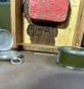 Die originale Dose ist zentral eingesetzt, weist altersbedingte Gebrauchsspuren sowie Patina auf und kann ohne Beschädigungen entnommen werden – ein authentischer Zustand, wie er bei Originalteilen aus dieser Zeit zu erwarten ist. Es handelt sich nicht um lose Ware, sondern um ein fertig gestaltetes Ausstellungsstück, das sich ideal für Sammler, Vitrinen oder thematische Räume eignet.