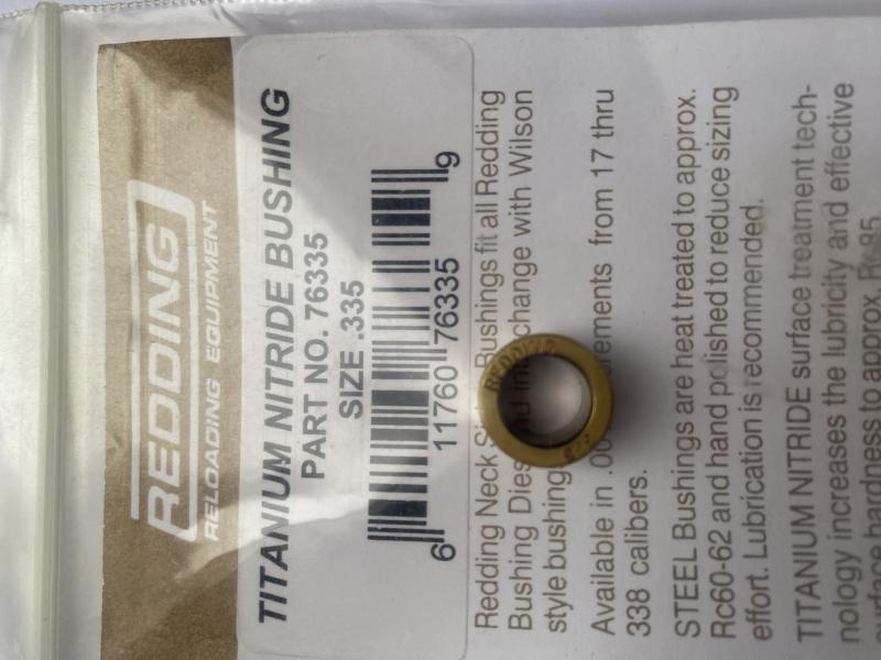 Biete eine Titanium Bushing der Firma Redding in der Größe 335 für z.B. 308. Privatverkauf, keine Garantie, keine Rücknahme.