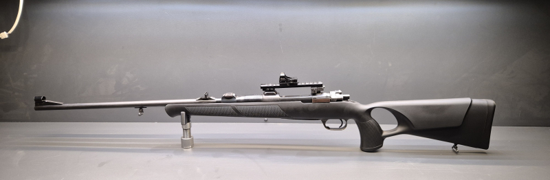 Durch die kompakte Bauweise und die Rotpunktoptik eignet sich die Büchse ideal für die Drückjagd. Gesamtlänge: ca. 114 cm, Lauflänge: ca. 58 cm