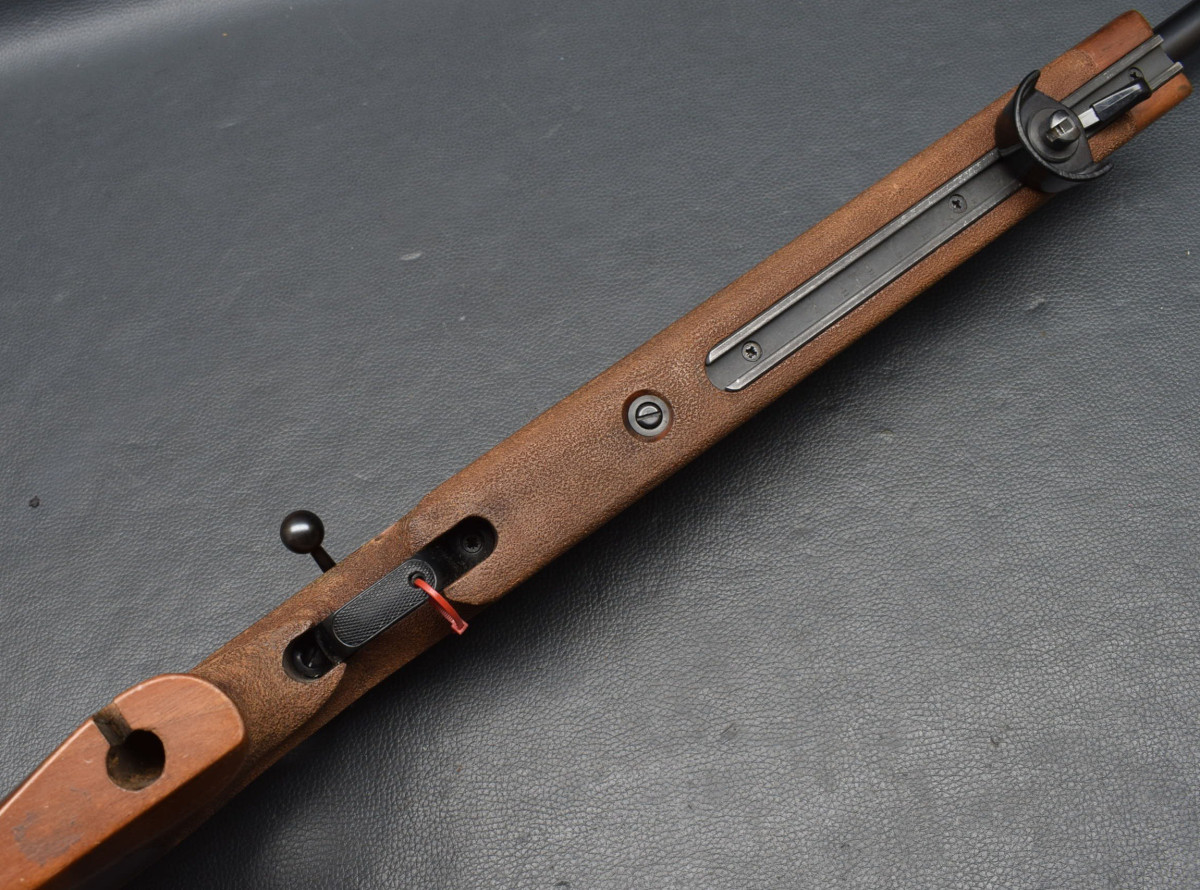 25 mm dicker Matchlauf, Korntunnelmit Ringkorn, 11 mm Schiene, Ohne Visierung, Zylinderverschluss mit Flügelsicherung, einstellbarer Matchabzug. Nussbaumschaft mit verstellbarer Schaftkappe, 11mm UIT Schiene und Handstop. Lauf sehr gut, Brünierung 96%, Schaft mit Gebrauchsspurren, Gebrauchtwaffe gut