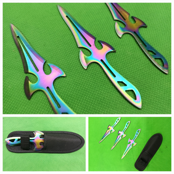 3-er Set Wurfmesser / Gesamtlänge ca. 19 cm / Lieferung mit Nylonscheide. Artikel Zustand : NEU / UNBENUTZT. Viel Spaß beim Bieten. Bitte beachten Sie meine anderen Auktionen auch ----!!!---- KEIN internationaler Versand (NO international shipping) !!!!!!!!! Ich biete KEINE Sammelbestellungen an. Jeder Artikel wird ohne Ausnahme einzeln versendet. Immer Artikel + Versand.