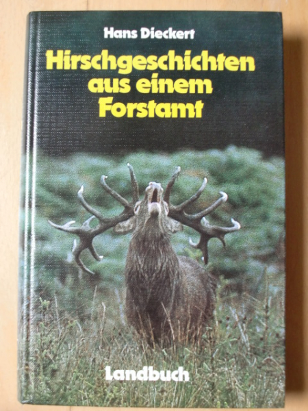 HIRSCHGESCHICHTEN AUS EINEM FORSTAMT - von Hans Dieckert, Landbuch-Verlag Hannover 1986, 254 Seiten mit sehr vielen Farbabbildungen - Inhalt u.a.: Gästehirsche / Ein Minister und drei Kugeln / Mit dem Ruf / Hochbrunft // STARKE HIRSCHE: Sukarno / Der Mächtige / Der Feldhirsch / Der Sekthirsch / Big Ben / Der Schöne // ABNORME HIRSCHE: Der Fackelhirsch / Der Säbelhirsch / Der Blumenkohl-Hirsch / und anderes mehr - Guter Zustand