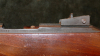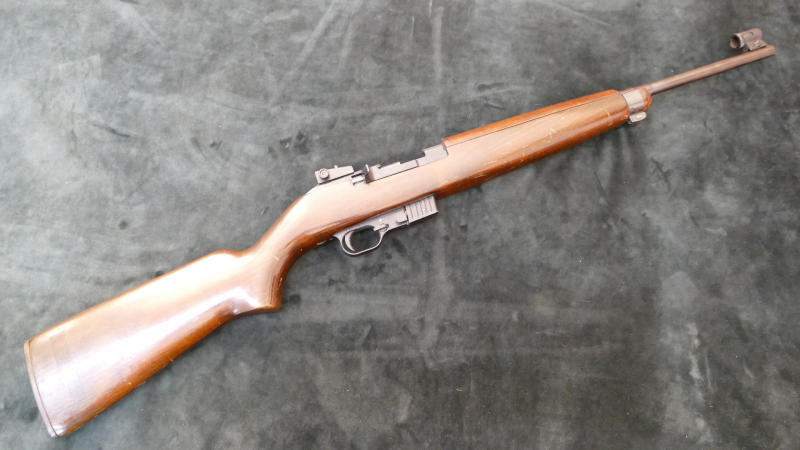Erma EM 1, Kal. .22lr., altersgemäß ordentlicher Zustand, Lauf innen blank, der Schaft wurde mal "demilitarisiert", sprich der Schaftdurchbruch wurde mit entsprechenden Holzstücken verschlossen. Metallteile mit ganz leichten Flugrostspuren. Hinten befindet sich auf der 11mm-Prismenschiene die original Schiebekimme, vorne wurde ein Korntunnel mit Balkenkorn montiert. Für eine reibungslose Funktion braucht die Waffe etwas stärker geladene Munition. Beschuß 1969. Lauflänge 45cm, Schaftlänge 32,5cm, Gesamtlänge 89cm.