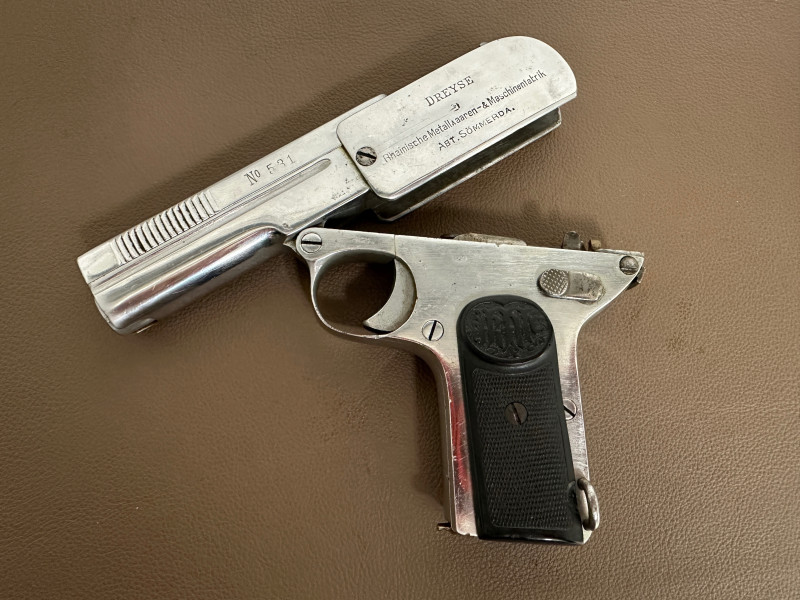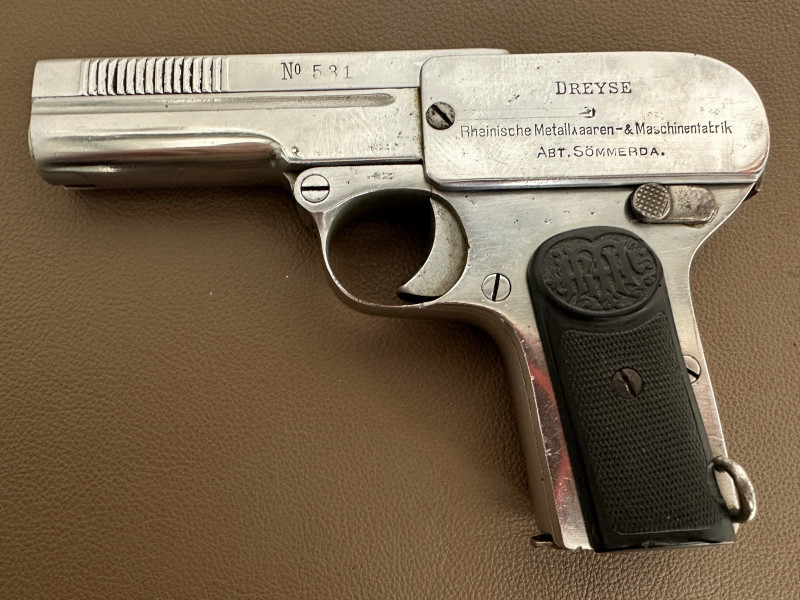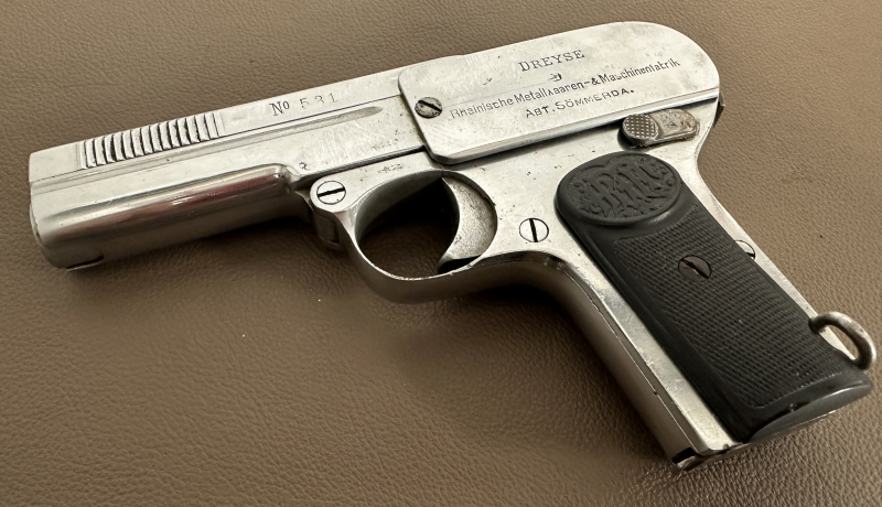 Polizeisammler DREYSE 07 Kal. 7,65mm SN 33561 Behördenr. 531 vernickelt