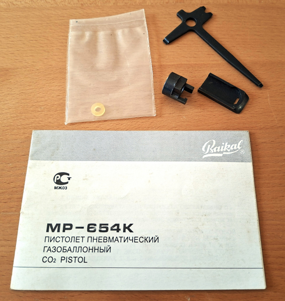 Zum Verkauf kommt hier: Eine Orig. Anleitung, Werkzeug, Dichtung und Kleinteile für eine "Baikal MP - 654 K" Makarov Co2 Luftpistole.