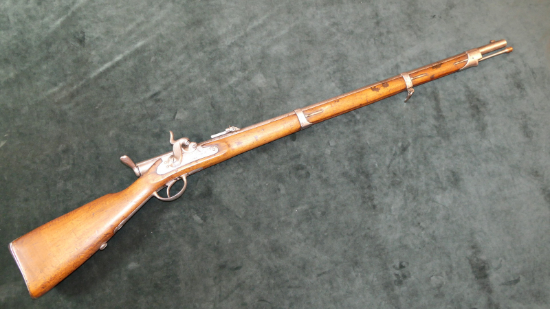 Podewils-Lindner-Gewehr Mod. 1858/67, Kal. 13,9mm, Baujahr 1862 (Amberg), altersgemäß guter Zustand. Wenig Rostspuren, der Lauf sieht (für das Alter) noch ganz ordentlich aus (kleinere Rostnarben und leicht rau). Der Lade-/Putzstock könnte ein Nachbau sein und läßt sich aktuell nicht festschrauben. Bei der oberen Systemschraube bin ich mir auch nicht sicher, dass diese original ist. Besichtigung bei uns im Ladengeschäft zu den Öffnungszeiten jederzeit möglich. Gesamtlänge 119,5cm (daher beim Versand leider Sperrgut). Detailfotos gerne auf Anfrage (bitte präzise anfragen, was als Foto gewünscht wird).
