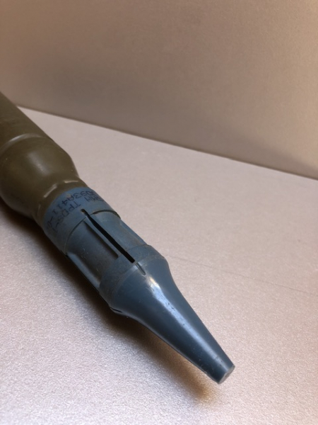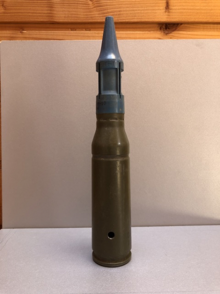 angeboten wird eine sehr schöne 25x137mm M910 TPDS ( Target Practice discarding Sabot) Patrone, Original US mit schönen Stempelungen. Die Hülse ist im unteren Drittel angebohrt zur Anzeige der fehlenden Treibladung, ZH deaktiviert. Bei dem Penetrator handelt es sich bei der Übungsversion um einen sogenannten mild Steel Core der nicht ins Waffengesetz fällt.