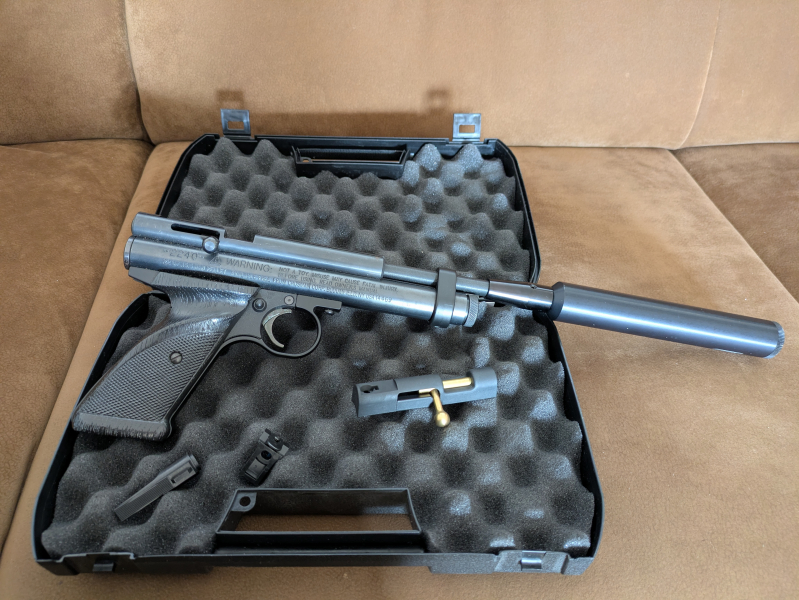 (5,5mm Co2 Pistole mit steelbreach verbaut, und Schalldämpfer, Kunststoff Kammer liegt bei. )