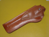 Sie bieten auf ein hoch sitzendes Gürtelholster der Firma Bianchi aus Leder, geeignet für SAA-Revolver. Das Holster ist unten offen, die genaue Bezeichnung des Holsters lautet " .44 S. A. #1". Mein Colt SAA, Kal. .45 long Colt, mit 7,5 Zoll Lauflänge paßt perfekt, nur der Lauf schaut unten 1cm aus dem Holster heraus. Wie es mit Waffen von Ruger, Uberti u.a. aussieht kann ich nicht sagen. Das Holster ist fast neuwertig und stammt aus Nichtraucherhaushalt. Privatverkauf, keine Garantie, keine Rücknahme.