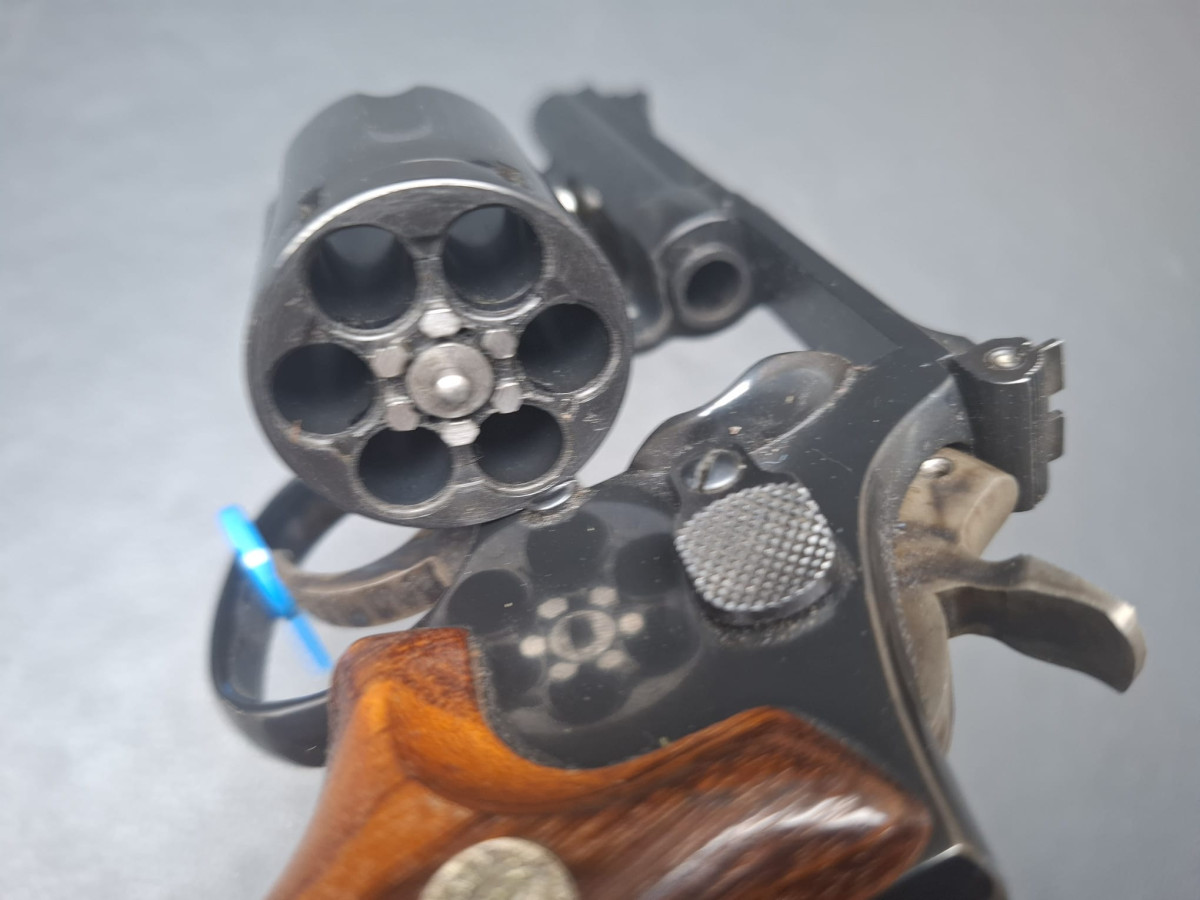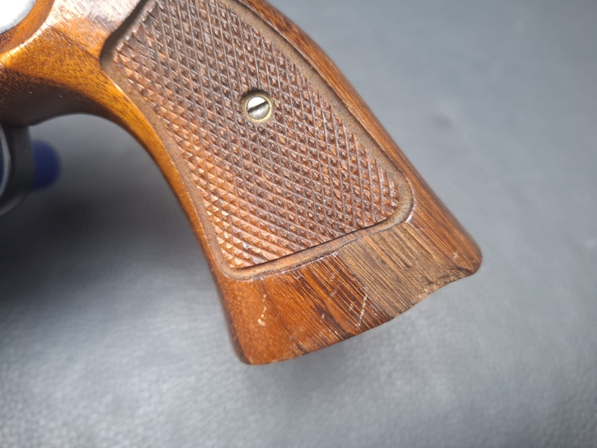 SA/DA Abzugssystem, trockener präziser Abzug, K-Rahmen, 6-Schuss Trommel, Holzgriff mit feiner Fischhaut (linke Griffschale mit kleiner Beschädigung ohne Einfluss auf Funktion oder Sicherheit)