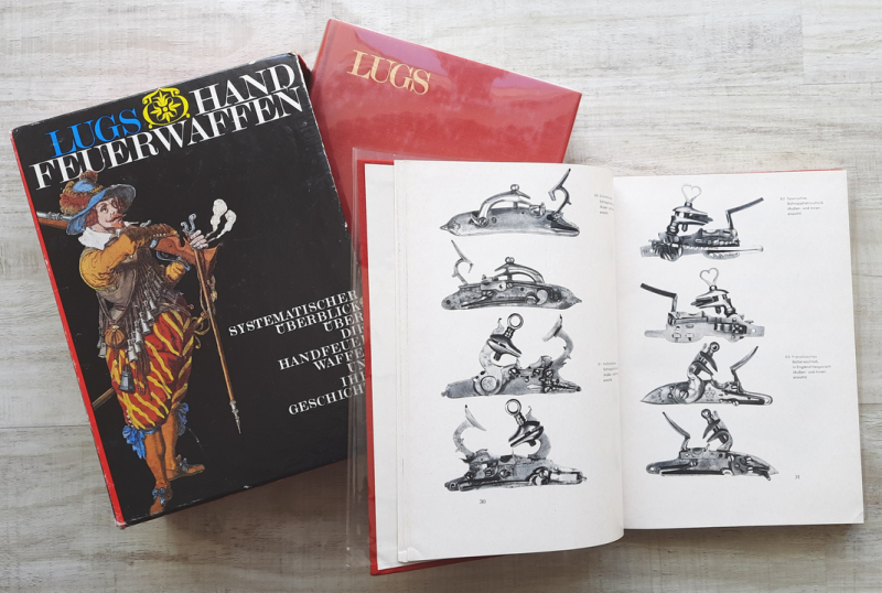 Zum Verkauf steht das zweibändige Standardwerk „Handfeuerwaffen – Systematischer Überblick über die Handfeuerwaffen und ihre Geschichte“ von Jaroslav Lugs. Die Bücher befinden sich in nahezu neuwertigem Zustand, der Schuber weist deutliche Gebrauchsspuren auf. Inhaltlich ist das Werk eines der umfassendsten Nachschlagewerke zur Entwicklung und Systematik von Handfeuerwaffen weltweit.
