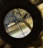 Optik: Das Bild ist hell und klar. Das Absehen (Crosshair mit Post) ist intakt. Altersübliche feine Staubeinschlüsse im Inneren vorhanden, die die Sicht jedoch nicht beeinträchtigen. Ein kleiner, schwarzer Partikel (vermutlich Lackabsplitterung) ist im Sichtfeld sichtbar.