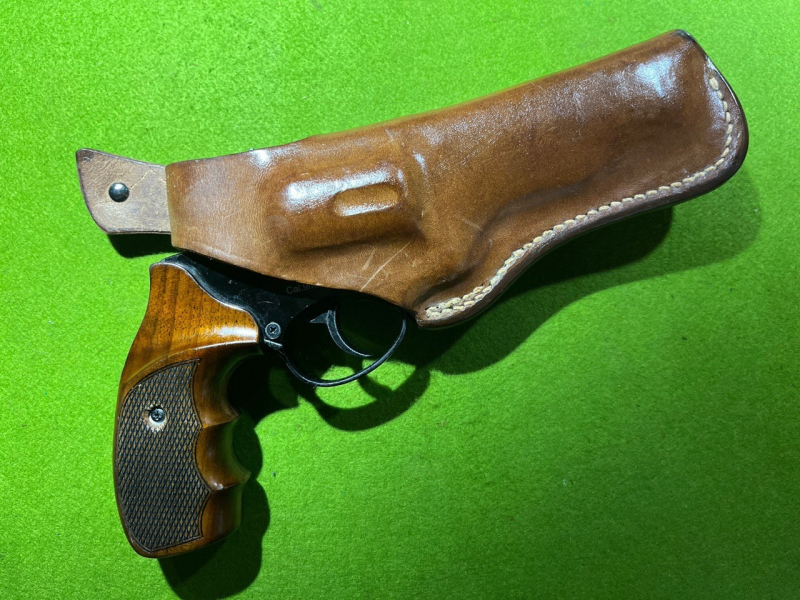das Holster kann für Modelle und Nachbauten von 6- schüssige Revolver mittlerer/großerer Klasse mit 3,0 bis 4,0 Zoll Lauf im 22lr/38spl.- Kaliber wie die abgebildete, oder der im Auktionstitel erwähnte Colt V- Frame wie z.B. der MK V