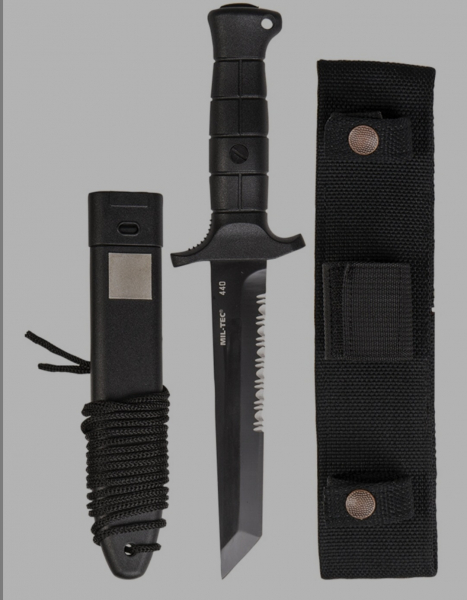 - Messer mit Scheide wird per Druckknöpfe und Klettverschluss an Gürtelhalterung fixiert