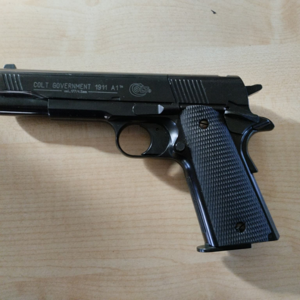 Ich verkaufe einen Colt 1991 Vollmetal CO2 mit Trommelmagazin Cal.4,5 mm Diabolo. Leider ist der Colt vom liegen undicht und zischt ab...:-(
