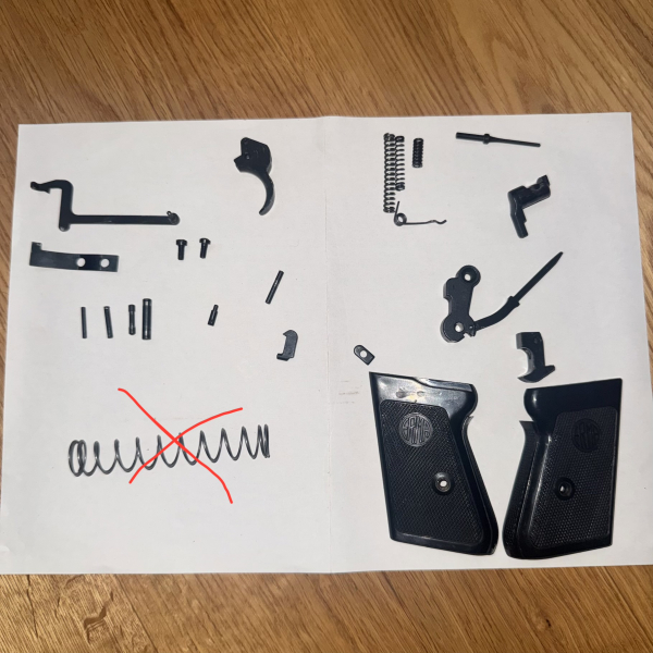 Verkaufe hier Ersatzteile für eine Erma EGP 75s geboten wird auf alles was auf dem Bild zu sehen ist außer die vorholfeder!! Die Teile haben normale Gebrauchsspuren Zustand bitte dem Bild entnehmen.