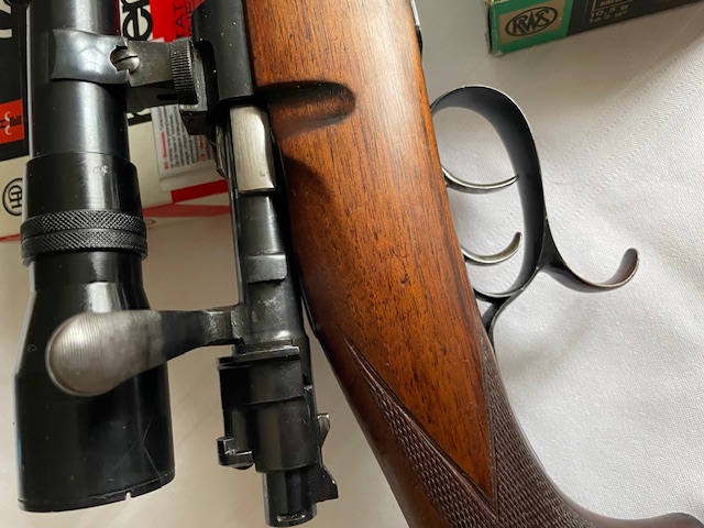 Ferlacher Repetierbüchse, Basis 98, Kal. 7x64, 8-Kantlauf, Böhler Spezial G- 55, flacher Kammerstengel, Fingerhaken, gutes Schaftholz, unbeschädigte Fischhaut, Falzbacke, Pachmayrkappe, SEM mit Kahles S6, österr. Absehen 4- Balken und Fadenkreuz, Verstellring schwergängig, Privatverkauf, ohne Garantie und ohne Rücknahme, gerne vorherige Besichtigung / Kontrollschuss und / oder Abholung- günstige TIG und Hirtenberger ABC wären auch noch da. Umbau Montage und modernes ZFR lohnt natürlich nicht, aber stilvoller Ansitz oder altmodische Pirsch kann auch reizvoll sein. Bitte die rechtlichen Vorgaben beachten. WmH
